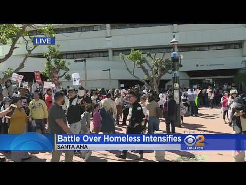 Dozens Of Protesters Gather Outside OC Supervisors Meeting Over Homeless Shelters - Huntington Beach Homeless Shelter - Orange County supervisors Tuesday could decide to abandon a controversial plan to erect large tents in Irvine, Huntington Beach and Laguna Niguel to ...